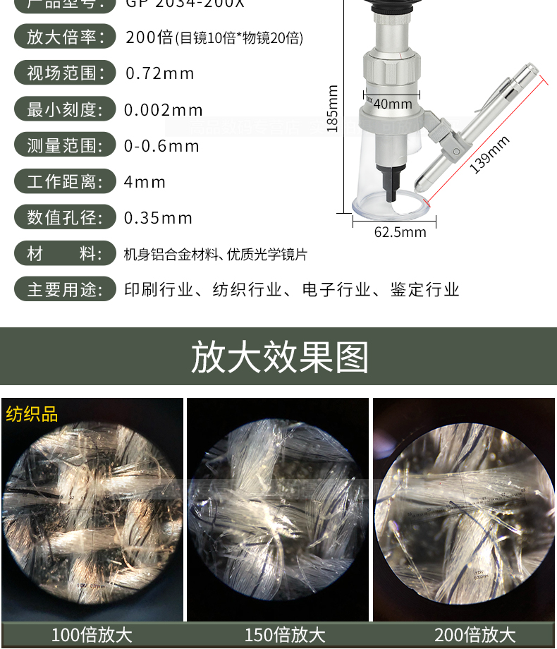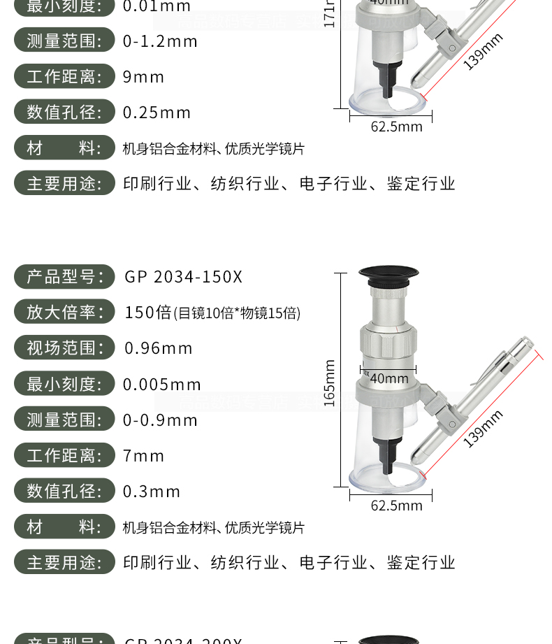 帶刻度放大鏡 GP 2034-100X/150X200X